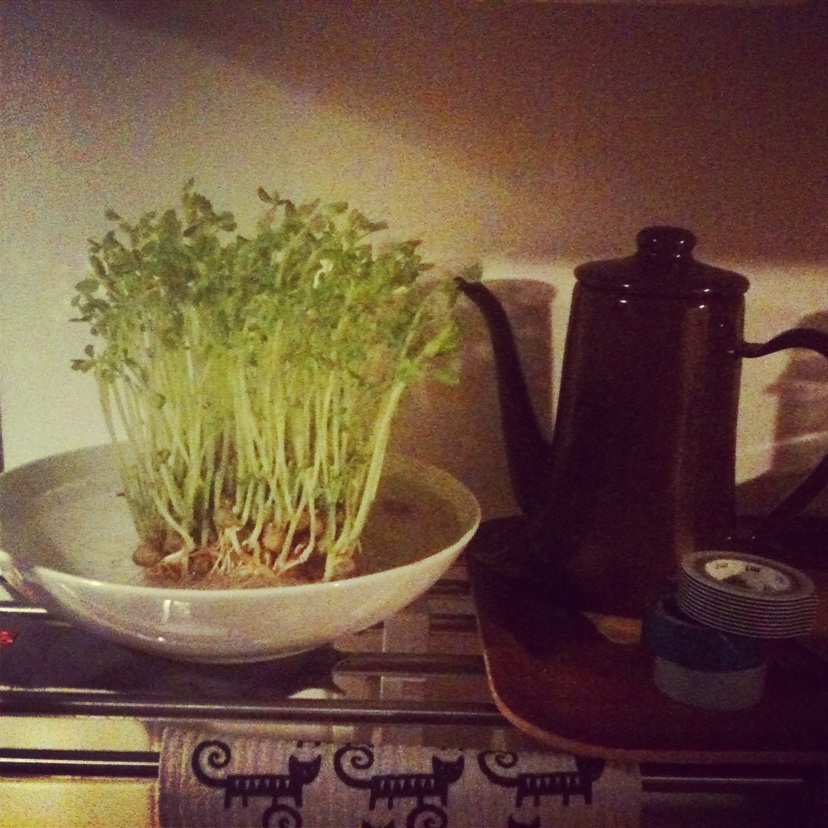 このあいだスーパーで買ってきた豆苗、